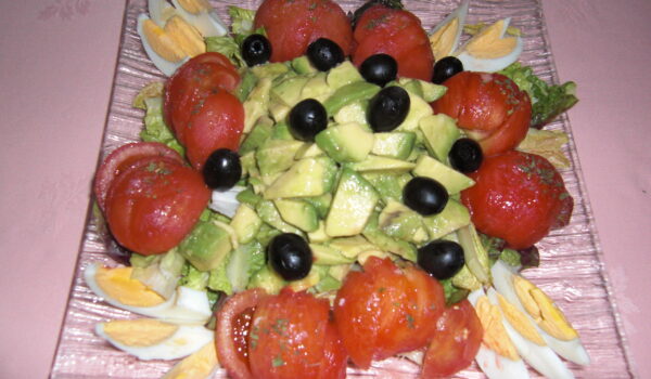 INGREDIENTES (4 personas) Tomates maduros 4 Aguacates 2 Huevos duros 2 Aceitunas negras 1