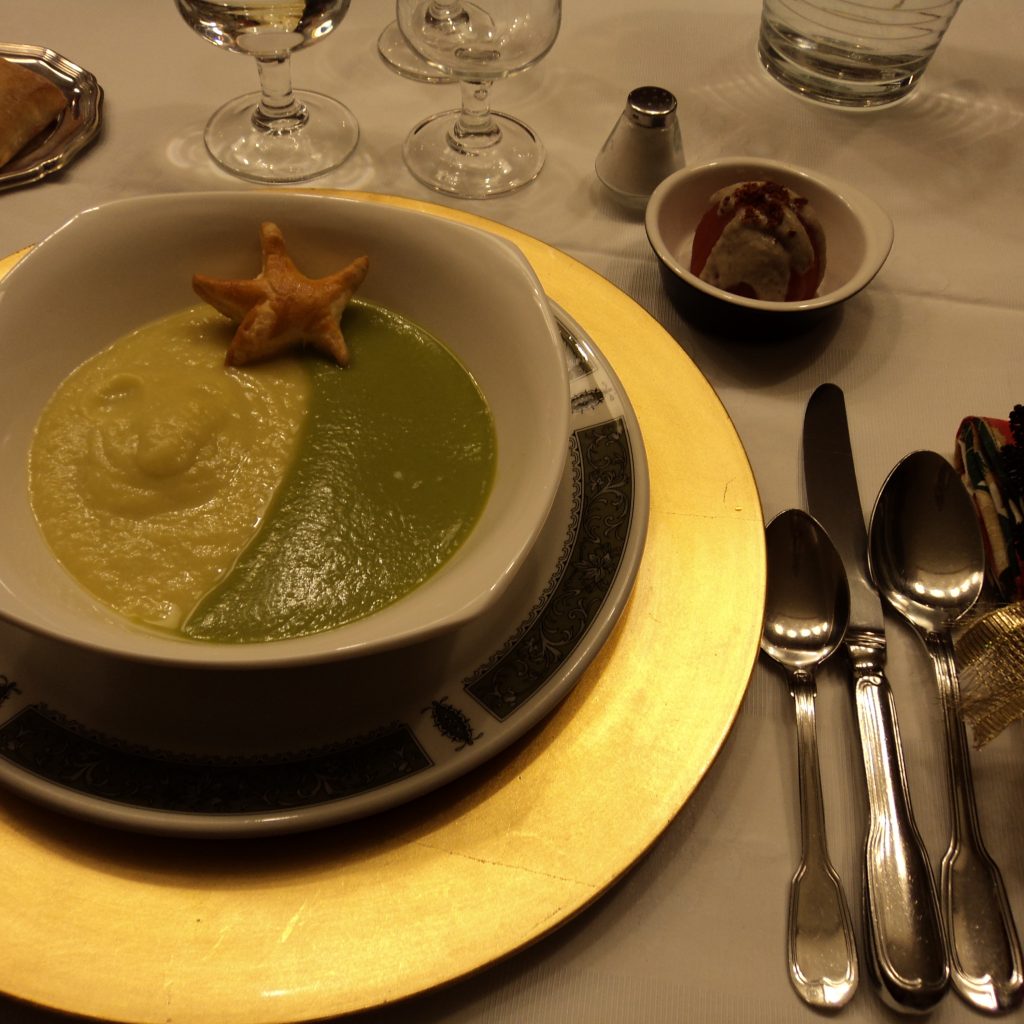 - Limpiar y partir los puerros y la cebolla y estofarlos en la mantequilla a fuego muy lento, evitando que tomen color.