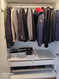 - Usar solo una percha para cada prenda. Cada uno tiene que decidir su propio número de perchas y mantenerlo. Por una prenda que entra otra que sale. Si me compro algo nuevo, tengo que deshacerme de algo.