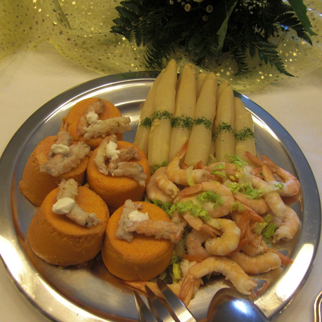 5.Se puede decorar con mayonesa o salsa rosa, con perejil picado, unas tiras de pimiento y gambitas o unos espárragos.