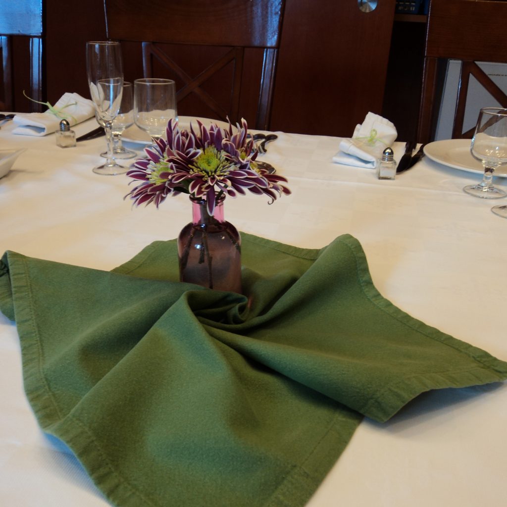 Para colocar así la servilleta se coge por el centro haciendo un pellizco y se gira hacia un lado.