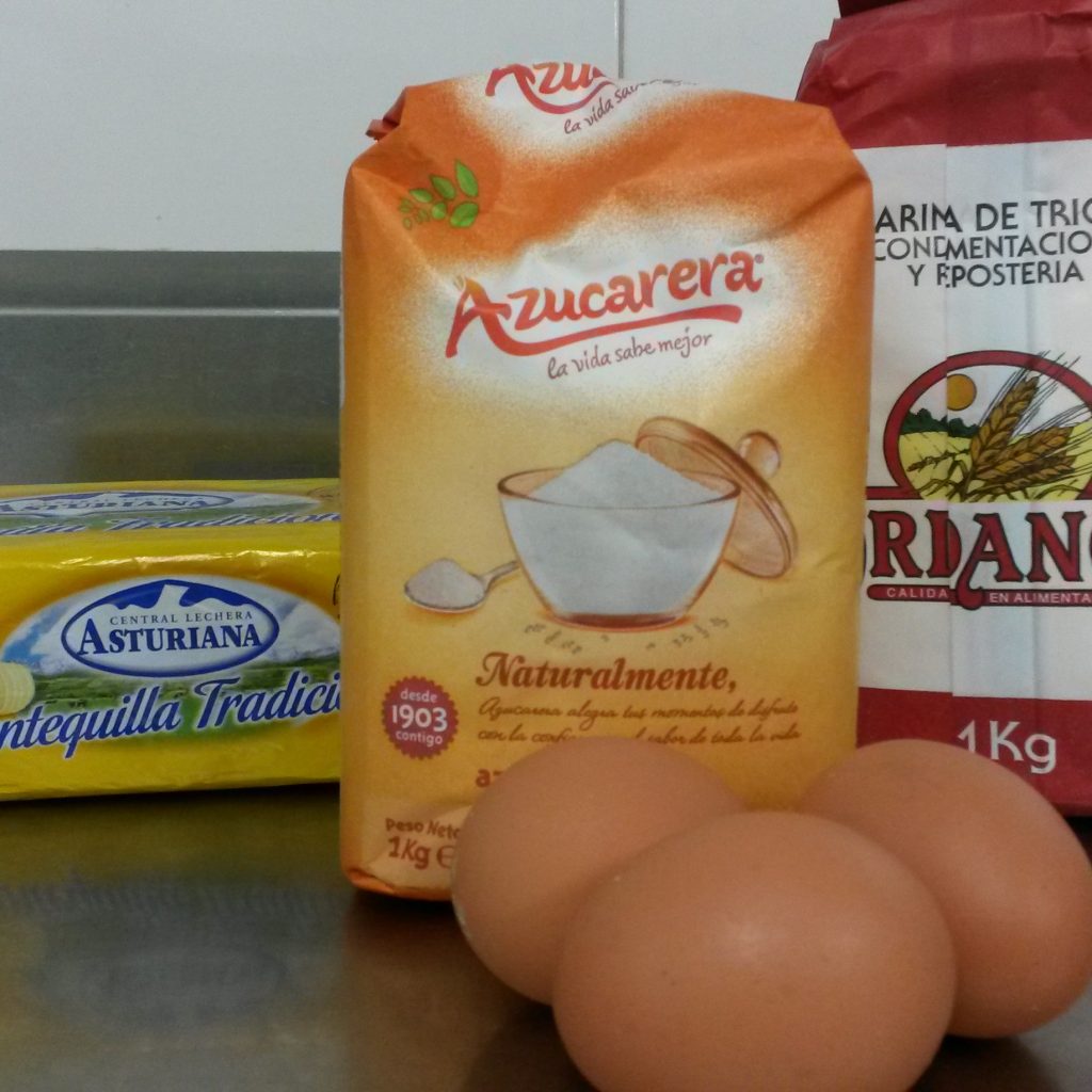 Deducción: Tras la palabra mantequilla en la lista de ingredientes, viene entre paréntesis el peso de los huevos. No resulta difícil separar los huevos de sus cáscaras o las yemas de las claras. Lo que no resulta tan fácil es separar los huevos de sus respectivos pesos. Ni siquiera con material sofisticado de mi laboratorio, con lo cual he supuesto que el peso de los huevos no es un ingrediente más sino una referencia comparativa para el peso de la mantequilla que he interpretado como “añada tantos gramos de mantequilla como gramos pesan 4 huevos estándar de gallina”.