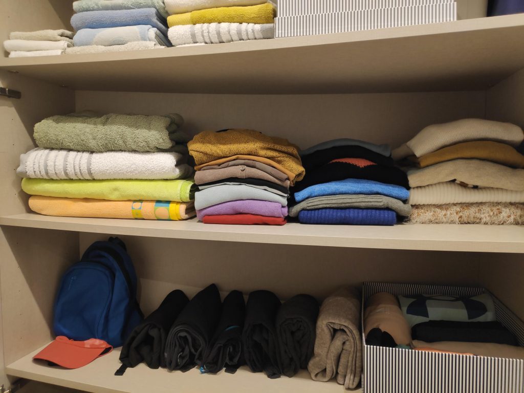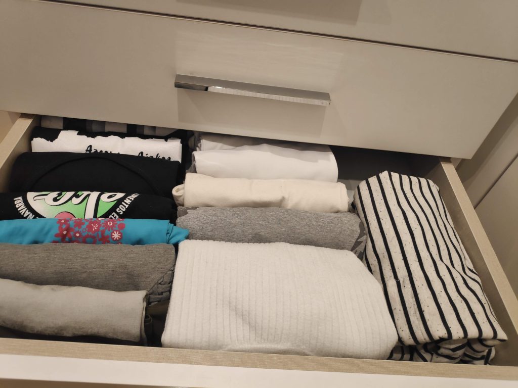 Después continuamos con el doblado vertical de camisetas, pañuelos, bufandas, ropa interior y vaqueros.