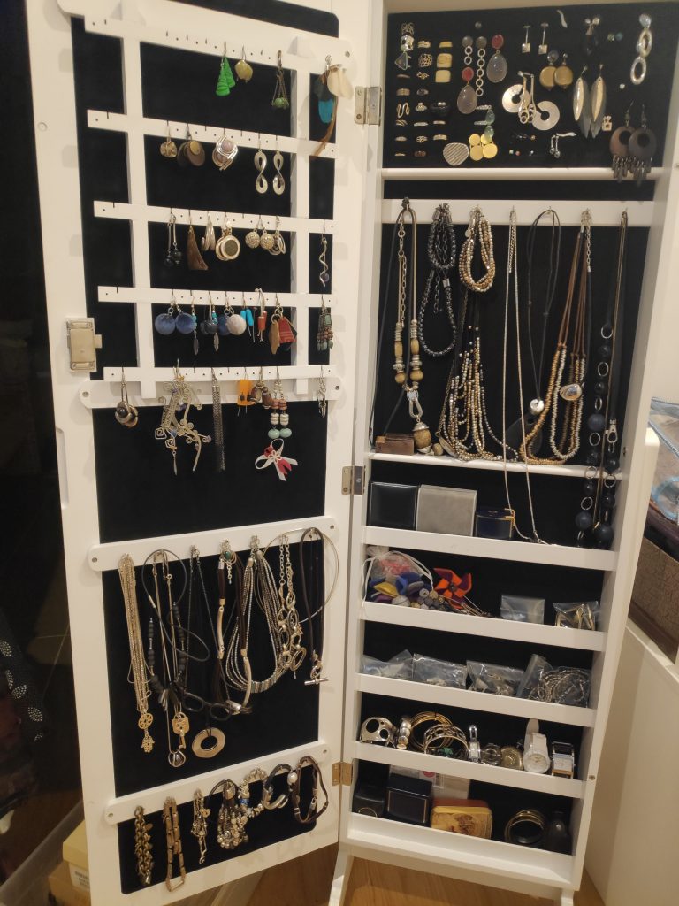 Se desprendió de bastantes que ya no le gustaban o estaban en mal estado y pusimos todos en este armario joyero.