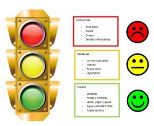 Como había niños bastante pequeños, hicimos el juego del semáforo. Llevé alimentos de juguete metidos en una bolsa y tres bolsas de papel con una cartulina pegada de los colores del semáforo. Un niño sujetaba la bolsa de los alimentos y cada uno tenía que coger uno sin mirar y meterlo en la bolsa correspondiente.