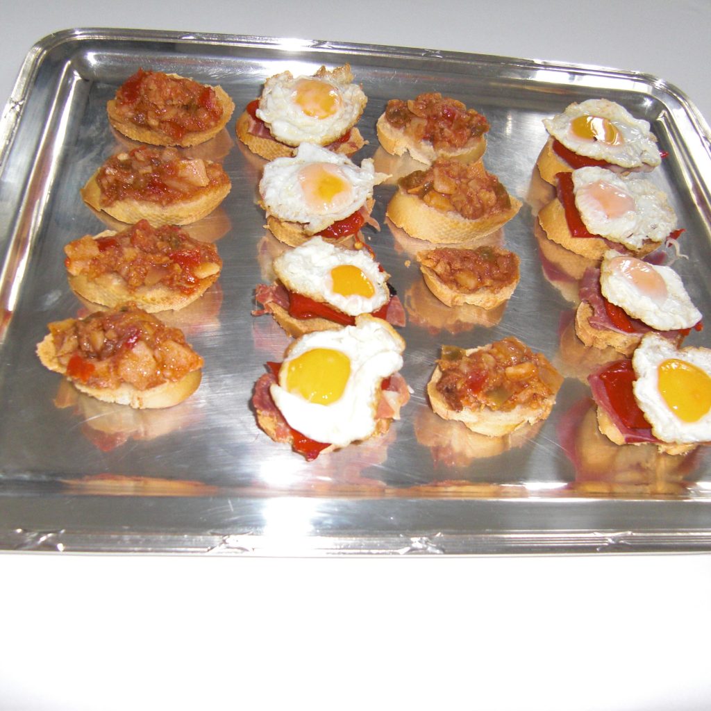 2.Pan con jamón serrano, pimiento del piquillo y huevo de codorniz frito